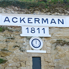 ロワール渓谷におけるスパークリングワイン生産のパイオニア、アケルマンは1811年、ベルギー出身のジャン=バティスト・アケルマンによって創業されました。1834年に他の生産者に先駆け伝統方式によるスパークリングワインの生産に成功しました。「ロワイヤル」と名付けられたフラッグシップはイギリス市場をはじめとするヨーロッパから、さらにはアメリカに至るまで、各国の名店を魅了しました。